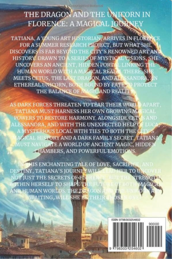 In this enchanting tale of love, sacrifice, and destiny, Tatiana's journey will lead her to uncover not just the secrets of Florence, but the strength within herself to shape the future of both magical and human worlds. The dragon and the unicorn are waiting, will she be their chosen one?
